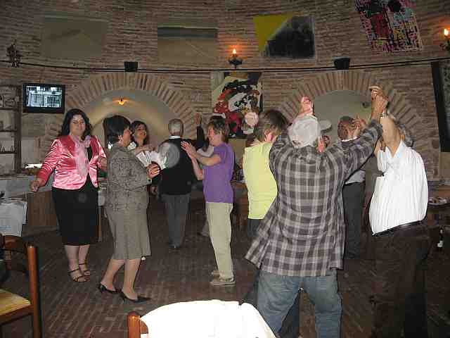 So for about 3 hours we visited with friends, ate and danced. What a great way to end our service there. Of course, Carol was a hit because she could dance the traditional Albanian dances.