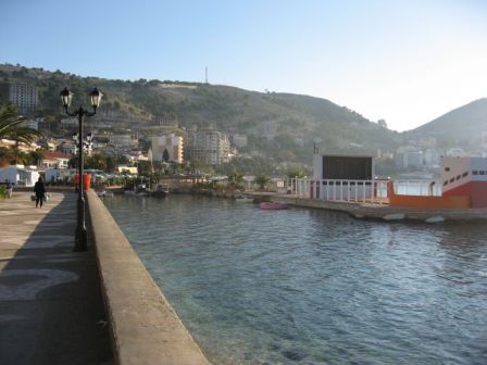 Of course the ride down was very interesting. We when through Ballsht, the oil production center of the country, then through Tepelena where a large water bottling plant is located, then through Gjirokastra (a stop on our return trip) where we picked up a lot of students heading home for the weekend, and finally over a high mountain range and down to the sea. For the most of the trip, the landscape was a drier climate than Durrës as the valley we followed is in the rain shadow of the 1200m (approx 3600ft) mountains. Once we crested the mountain, the scenery changed to pine forest and mountain streams. One of the downsides of public transportation is they do not stop at the Kodak picture overlooks, so there is no evidence of this change in landscape.
