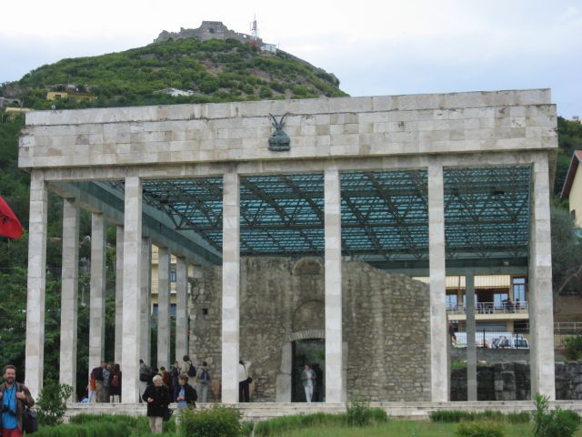 The first trip was heading north to Lezha and Shkodra. Lezha is the location where Skanderbeu died. Skanderbeu is the national hero because of his stance against the Turks. During his reign, Albania had a brief period of independence. So at the site of an ancient church, they have created a monument to him. Above the church is the old castle from the 1400s.